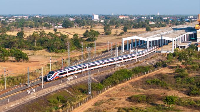 12月2日,在老挝万象,“澜沧号”动车组平缓驶离中老铁路万象站站台(无东谈主机像片)。新华社发(凯乔摄)